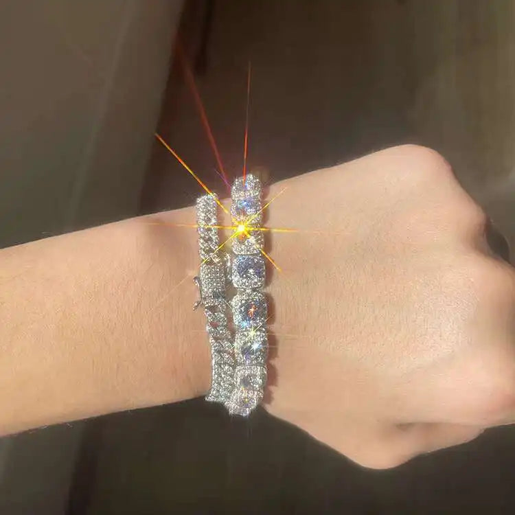 Crafted from solid silver with lab-grown VVS Moissanite stones set throughout, this rock link chain delivers exceptional sparkle and durability. The distinctive angular links create a bold, textured aesthetic that catches light beautifully. Perfect as a standalone statement piece or layered with other chains for a curated luxury look. Hypoallergenic and built to last.